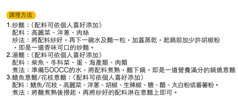 香Q美味拌炒麵 1.多樣口味,豐富層次 2.原味重現古早味
